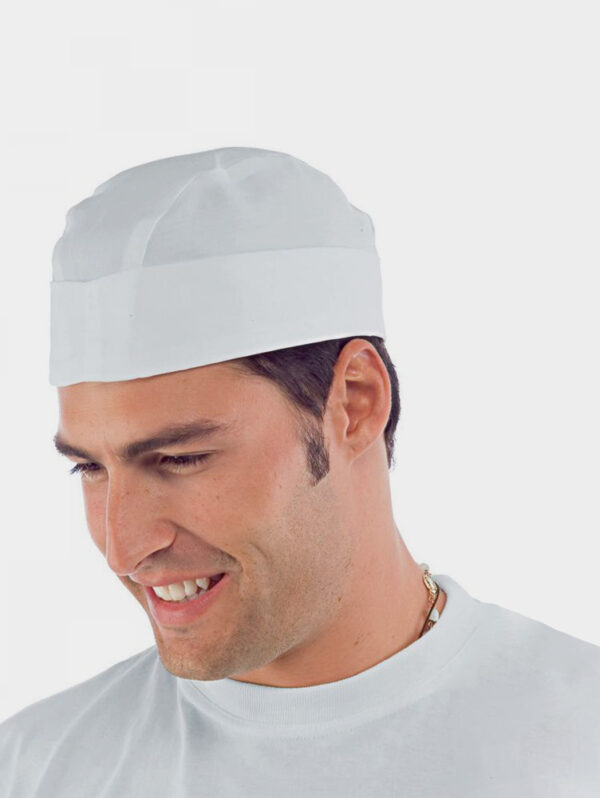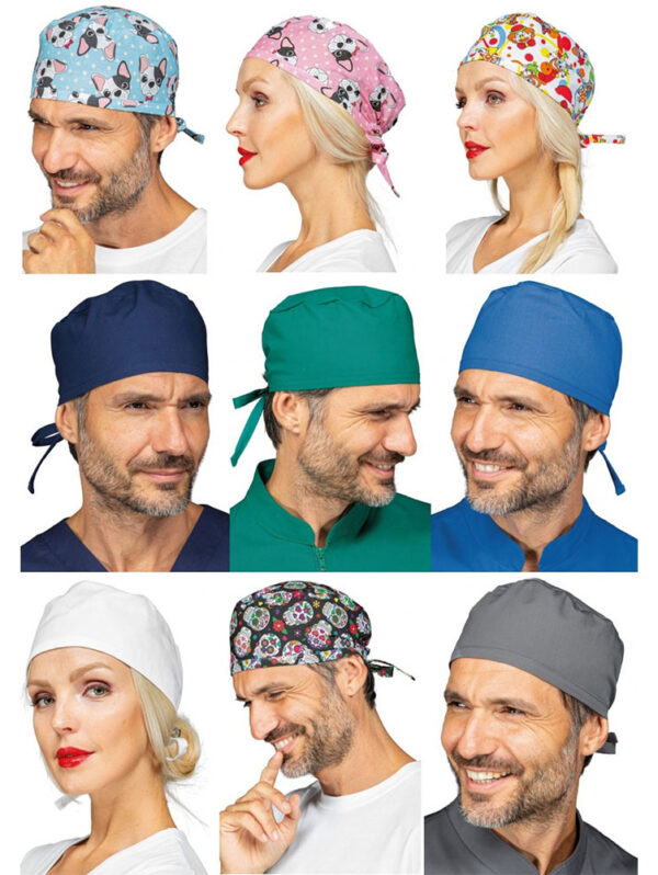 · Ampia fascia perimetrale con visiera posteriore, che permette di fissare il berretto con un nodo, garantendo una migliore vestibilità consentendo di legare i capelli all´indietro