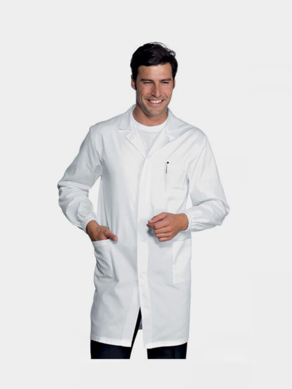 Camice da uomo a manica lunga, senza elastico ai polsi, 2 tasche e taschino sul petto, lungo 100cm.