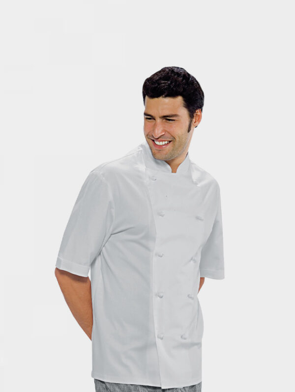 Giacca cuoco Panama 65% poliestere 35% cotone Isacco. La giacca da cuoco Panama slim, unisex, a maniche lunghe e di colore nero. Perfetta come uniforme sia per chef maschili che femminili che operano in cucina, ristorante o settore catering. Dotata di taschino sia sul petto che sulla manica, e si chiude con bottoni antipanico.