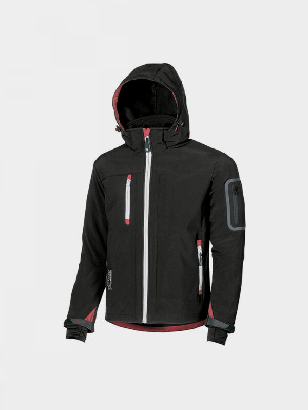 Giubbotto da donna realizzato in tessuto Softshell a tre strati, chiusura anteriore con zip waterproof, cappuccio staccabile con zip e coulisse, pratico foro in silicone per cuffie.