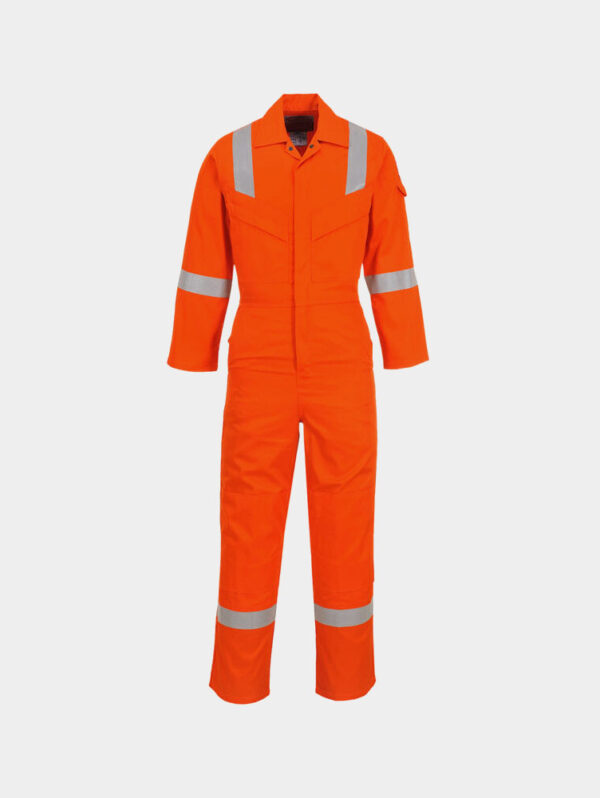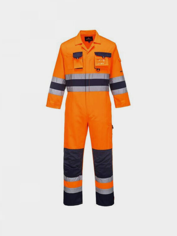La EN ISO 20471 nel colore arancione, con la resistente banda riflettente antifiamma sulle spalle, busto, braccia e gambe, offre una maggiore visibilità.