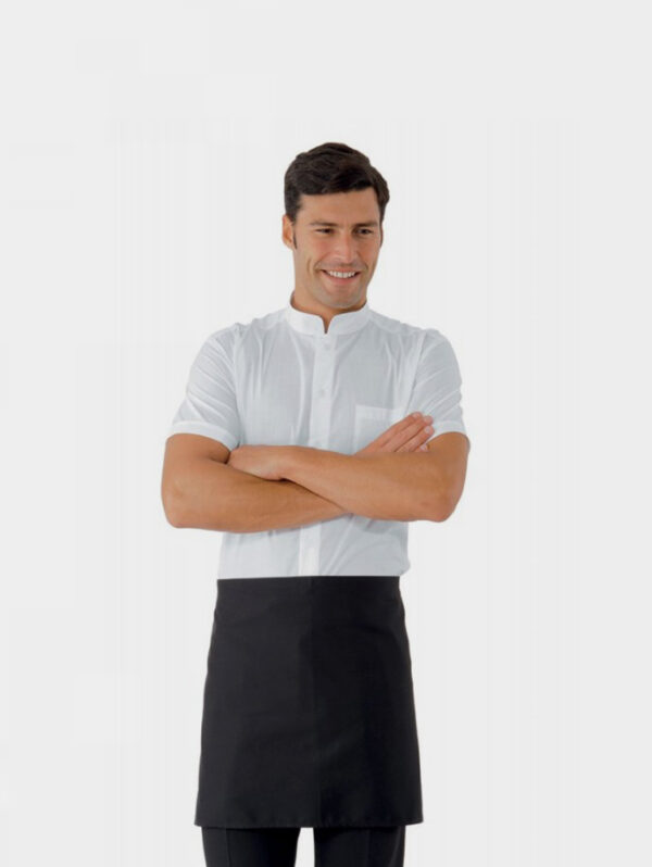 Grembiule corto unisex dal design Bistrot, perfetto per Sommelier. Ideale uniforme professionale per lavorare in cantine, bar, enoteche, bistro e per i camerieri in servizio in sala. Dispone di un sistema di regolazione al collo per adattare l’altezza della pettorina. È dotato di due spaziose tasche, una in vita e l’altra al petto.