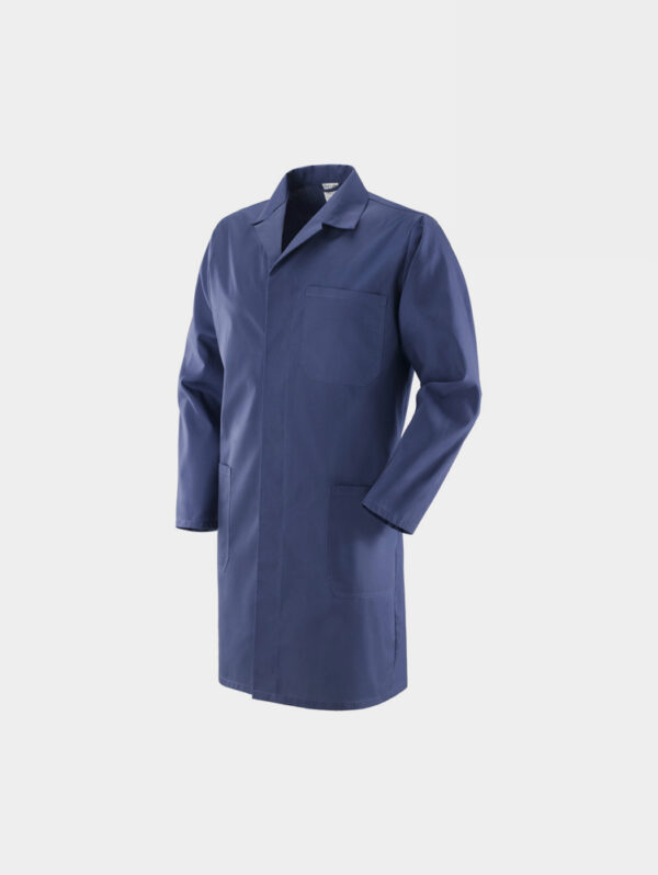 Tessuto piano 140 gr/m2 bicolore a righe. 65% poliestere, 35% cotone. Collo ed inserto tasche in contrasto.