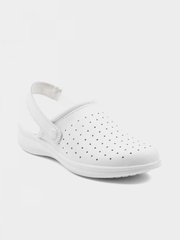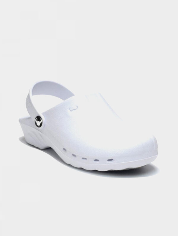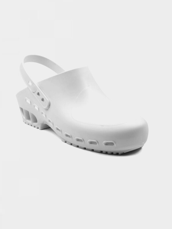 Zoccolo bianco antiscivolo con puntale in acciaio marcatura CE EN 345-1 S1.