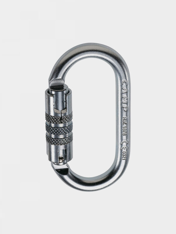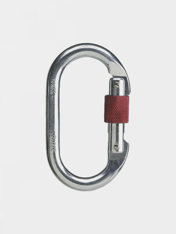 Anti-bloccaggio dell’anello di chiusura. Trattamento anti-corrosione, utile per collegare un sistema di assicurazione all’imbrago o assicurarsi durante le manovre di corda, ideale in ambito edilizio.